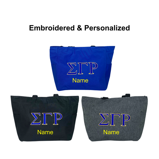 Sigma Gamma Rho Personalized Embroidered Zipper Tote Bag