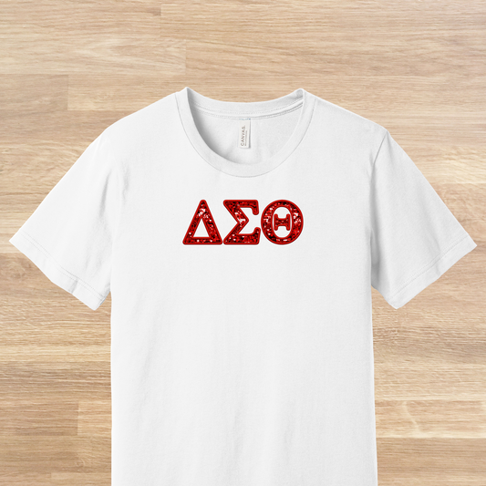 Delta Sigma Theta Greek Letters Faux Embroidered Sequins T-Shirt