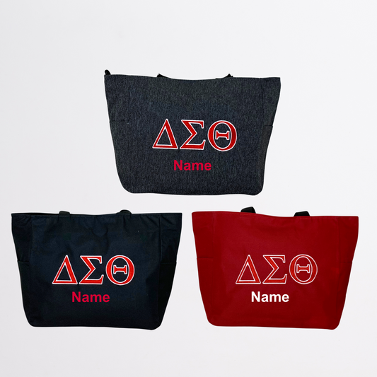 Delta Sigma Theta Personalized Embroidered Zipper Tote Bag