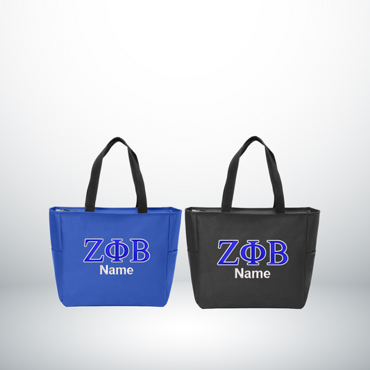 Zeta Phi Beta Personalized Embroidered Zipper Tote Bag